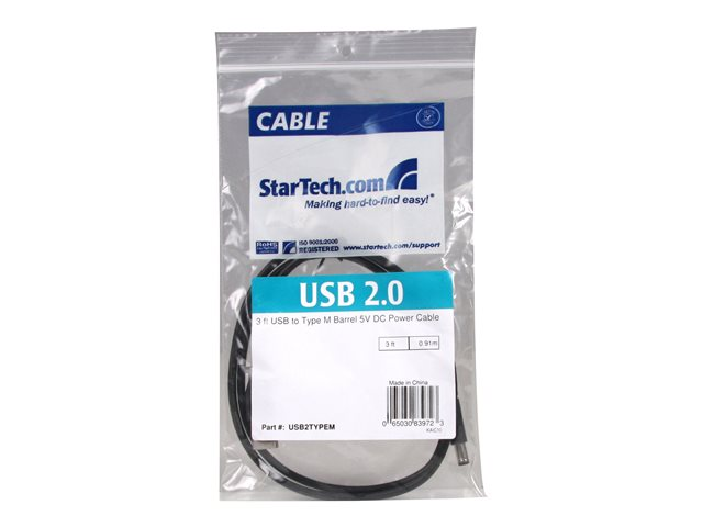 cylindrisk kontakt av typ M - 91 cm - Strömkabel - USB (endast ström) (hane) till DC-uttag 5,5 mm (hane) - 91 cm - formpressad - svart - för P/N: DVI2VGACON, SPDIF2AA, ST122LE, ST122LEA, ST122PROA